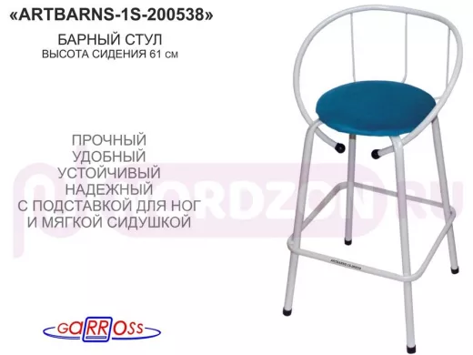 Барный стул "ARTBARNS-1S" органично дополнит интерьер модного заведения или домашней кухни. Стильная модель высотой 0,61 метра устойчиво стоит на четырех опорах с удобными подножками.