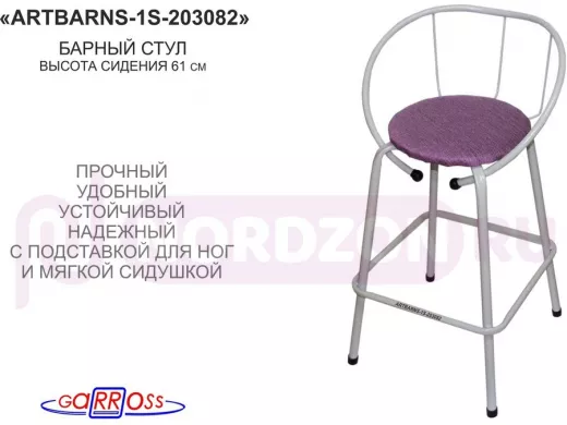 - "ARTBARNS-1S" позволит уютно расположиться, облокотиться на спинку и провести немало приятных минут за коктейлями и беседой. Сиденье удобной формы обито тканью.