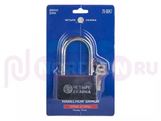 Заказать звонокНавесной замок 70 мм сталь длинная дужка "Четыре сезона" 79-0047
