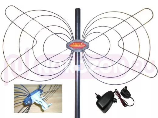 В корзину Купить в 1 клик "БАБОЧКА-15А-5ВОЛЬТ" АКТИВНАЯ ЧЁРНАЯ уличная ТВ антенна с усилителем DVB-T2, питание 5В от приёмника