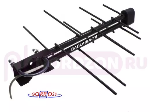 • "БАБОЧКА-16" ЧЁРНАЯ уличная телевизионная антенна предназначена для приема цифрового DVB-T2 и аналогового телевизионного сигнала ДМВ диапазона