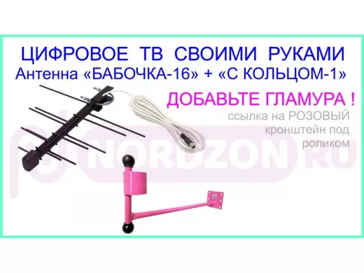 В корзину Купить в 1 клик "БАБОЧКА-16" СЕРЕБРИСТАЯ антенна телевизионная уличная цифровая DVB-T2, С ХОМУТОМ, кабель 5 метров