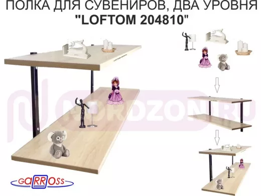 Заказать звонокПолка для сувениров, высота 25см, два уровня "LOFTOM 204810" размер 120х30см, чёрный/дуб сонома