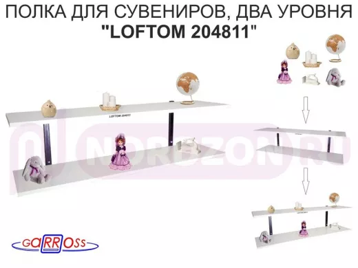 Полка для сувениров, высота 25см, два уровня "LOFTOM 204811" размер 120х30см, чёрный/сосна выбелен.