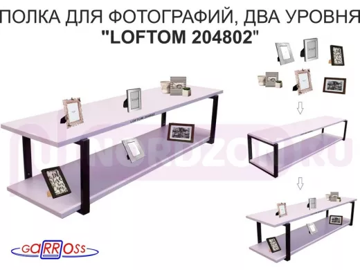 Полка для фотографий и игрушек, высота 25см "LOFTOM 204802" размер 120х30см, чёрный/лаванда