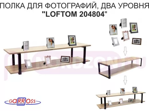 Полка для фотографий и игрушек, высота 25см "LOFTOM 204804" размер 120х30см, чёрный/дуб сонома