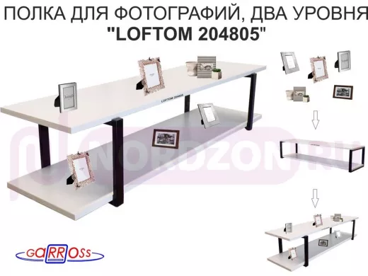 Заказать звонокПолка для фотографий и игрушек, высота 25см "LOFTOM 204805" размер 120х30см, чёрный/сосна выбелен.