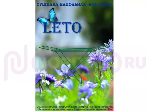 - "БОГАТЫРЬ" LETO сушилка напольная ЗЕЛЁНАЯ 20 метров, предназначена для сушки белья