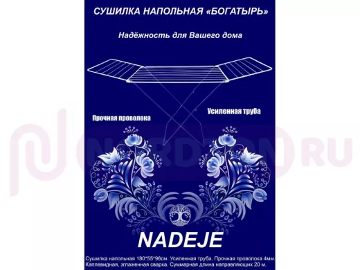 - "БОГАТЫРЬ" NADEJE сушилка напольная СИНЕ-БЕЛАЯ 20 метров, предназначена для сушки белья