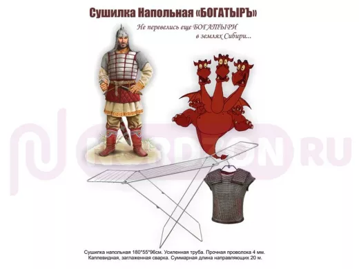 - "БОГАТЫРЬ STYLE - 4" сушилка напольная СЕРЕБРИСТАЯ 20 метров, предназначена для сушки белья