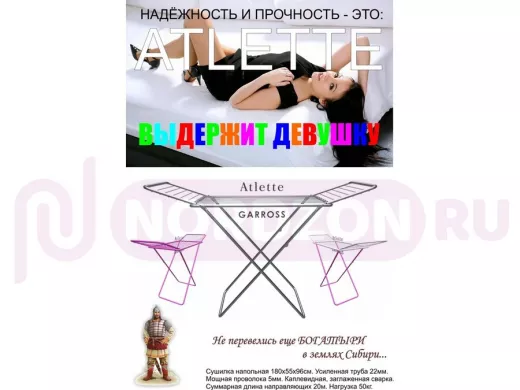 Заказать звонок"ATLETTE-80969" сушилка напольная серебр. ВЫДЕРЖИТ ДЕВУШКУ труба 22мм, проволока 5мм, до 50кг