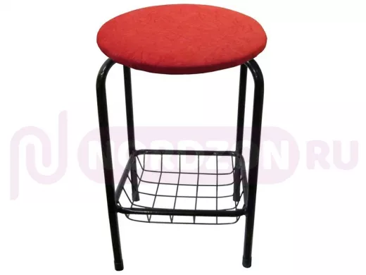 Табурет с подставкой для ног и корзинкой для вещей "TABURETTO-15902" чёрные ножки, красный верх