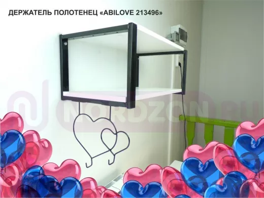 Держатель полотенец под полку, вешалка для вещей, два сердца с крючками, чёрный "ABILOVE 213496"