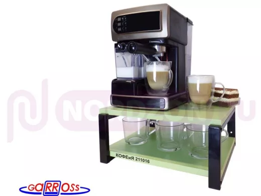Заказать звонокПолка под кофемашину к стене, высота 17см, черный каркас "КОФЕиЯ 211016" полки 30х40см,салатовый