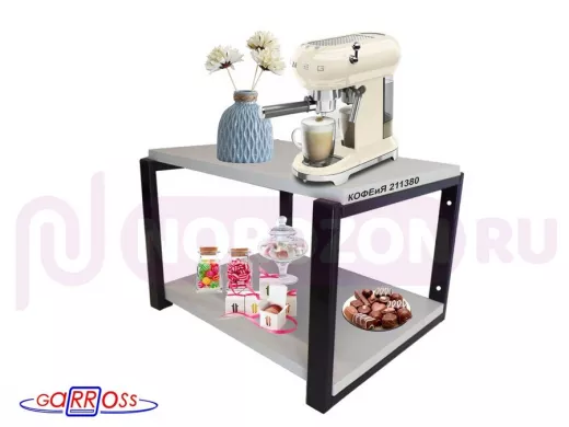 Заказать звонокПолка под кофемашину к стене, высота 27см, черный каркас "КОФЕиЯ 211380" полки 30х40см, сосна
