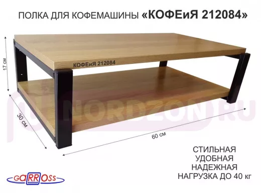 Заказать звонокПолка для кофемашины, черная "КОФЕиЯ 212084" высота 17 см, полки 30х60 см, дуб сонома, 2 уровня