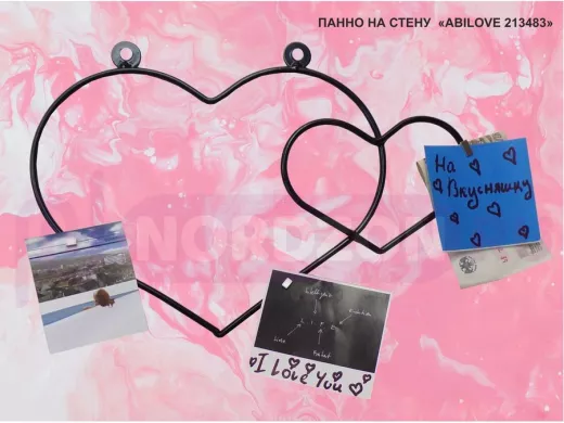 Заказать звонокПанно на стену с 3 магнитами для записок и фотографий, два сердца, чёрный "ABILOVE 213483"