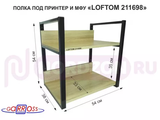 Заказать звонокПолка под принтер и подставка для МФУ, высота 54см черная "LOFTOM 211698" 2 уровня, 35х54см, дуб