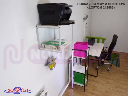 Заказать звонокПолка под МФУ или принтер, высота 38см серый "LOFTOM 212586" две полки 35х54см, сосна выбеленная