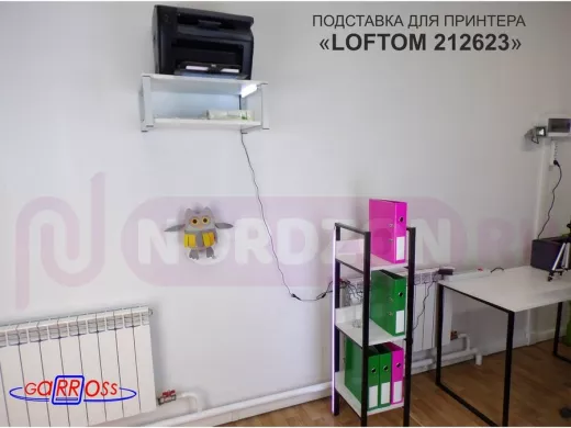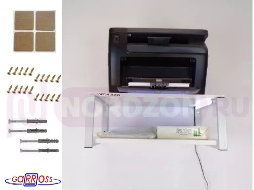- Полка надежно крепится к стене при помощи анкеров или шурупов с дюбелями, на ней можно разместить принтер, сканер, МФУ и другую офисную технику