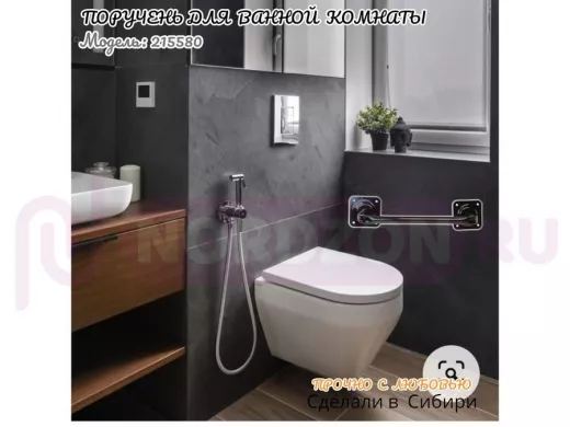 - Поручень пристенный для туалета, ванной комнаты имеет лаконичный и стильный дизайн, для крепления к стене