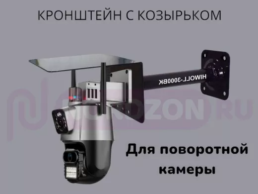 Кронштейн для поворотной камеры с вылетом 25см и козырьком для защиты "HIWOLL-216162" черный, сталь