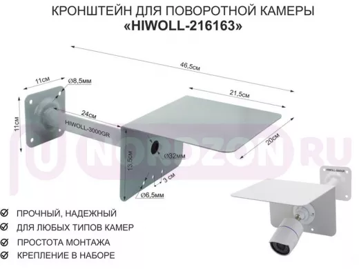 Кронштейн для поворотной камеры с вылетом 25см и козырьком для защиты "HIWOLL-216163" серый, сталь
