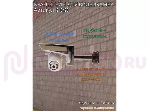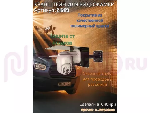 Заказать звонокКронштейн для поворотной камеры с вылетом 25см и большим козырьком "HIWOLL-216423" черный, сталь