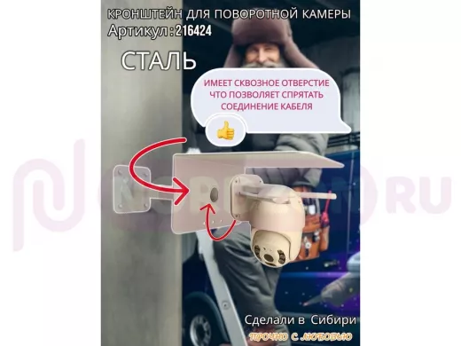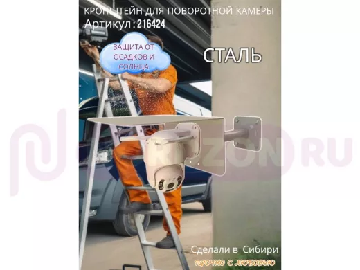 - Стальной кронштейн позволяет вынести камеру от стены на 25 см.