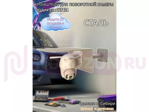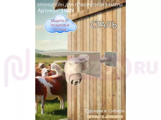 Кронштейн для поворотной камеры с вылетом 25см и большим козырьком "HIWOLL-216424" серый, сталь