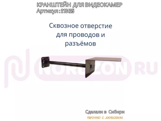 - Кронштейн для крепления видеокамеры к стене имеет сквозное отверстие от основания до козырька, что позволяет спрятать соединения кабеля, тем самым защищает их от внешних воздействий (дождь, снег, ветер) поэтому нет необходимости использовать дополнительный гермобокс, т.к. разъемы спрячутся в трубе.