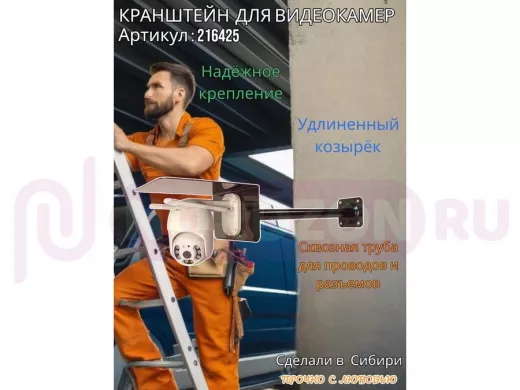 - Стальной кронштейн позволяет вынести камеру от стены на 50 см.