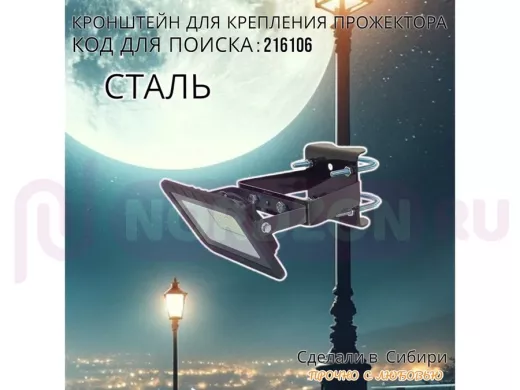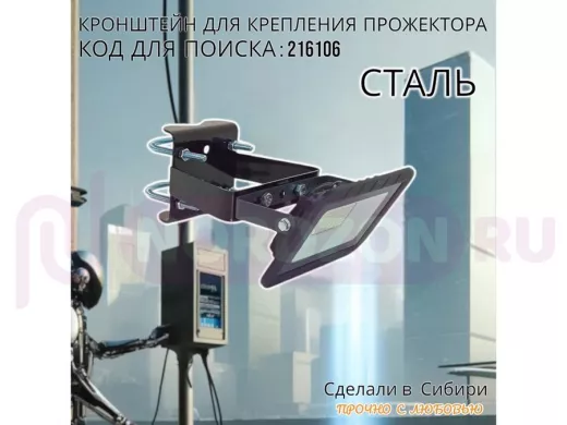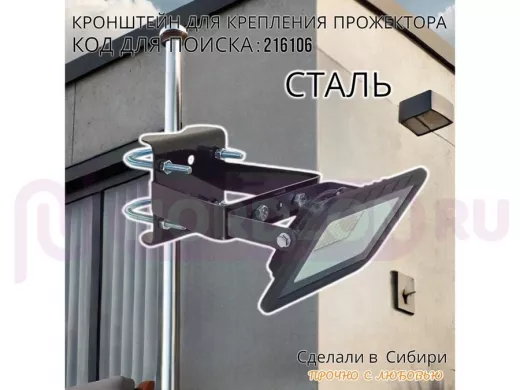 Заказать звонокКронштейн усиленный для крепления прожектора на трубе до 51мм "ПРОЖЕКРЕП-216106" сталь, цвет черный