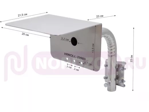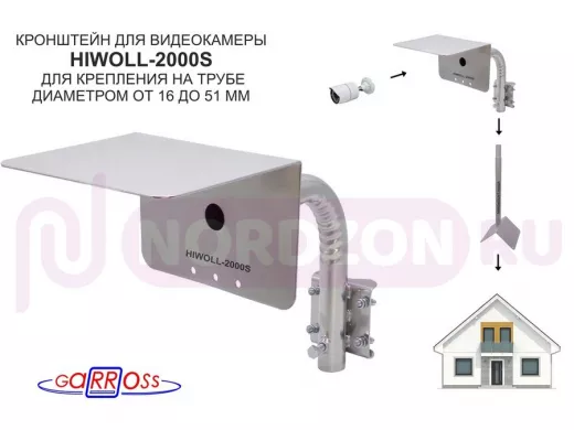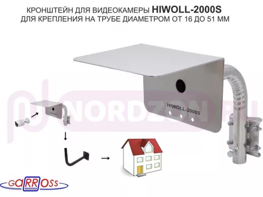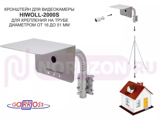 Заказать звонокКронштейн "HIWOLL-2000S-201358" серебристый с хомутами и козырьком на мачту для камеры и прожектора