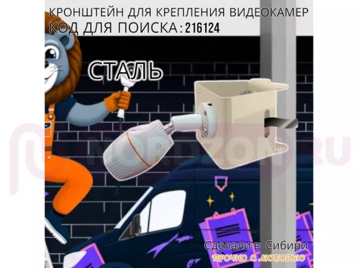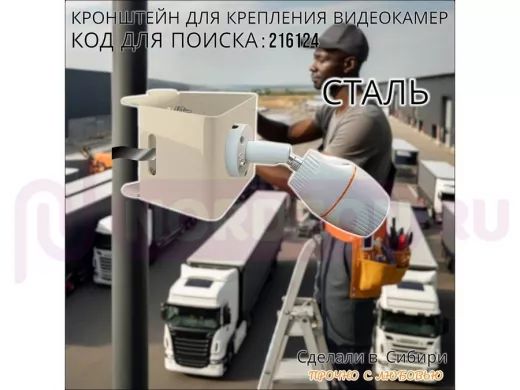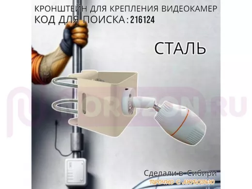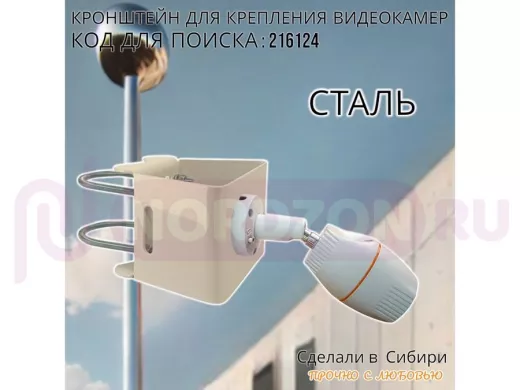 - Универсальный усиленный кронштейн предназначен для крепления видеокамеры на трубе диаметром от 15 до 51мм или на столбе.