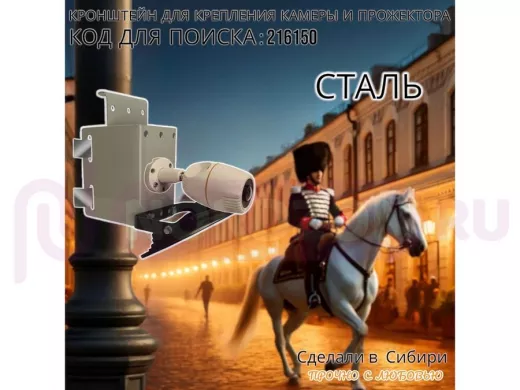 - Кронштейн позволяет быстро зафиксировать прожектор или камеру наблюдения на столб или трубу.