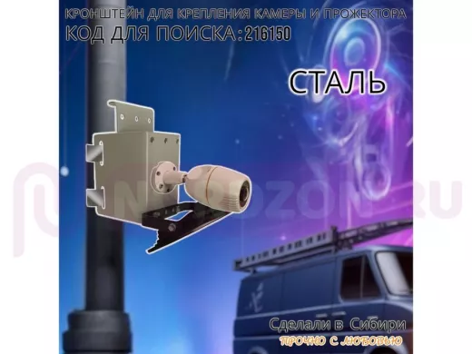 - Универсальный усиленный кронштейн предназначен для крепления прожектора или камеры на трубе диаметром от 15 до 51мм или на столбе.