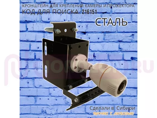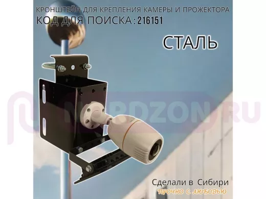 Кронштейн универсальный на трубу или столб для камеры или прожектора "ПРОЖЕКРЕП-216151" сталь,черный
