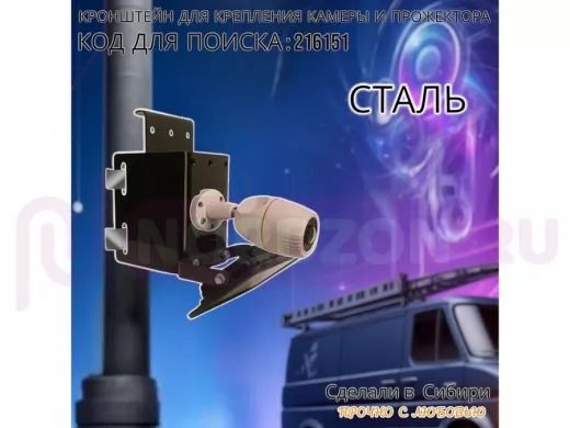 - Универсальный усиленный кронштейн предназначен для крепления прожектора или камеры на трубе диаметром от 15 до 51мм или на столбе.