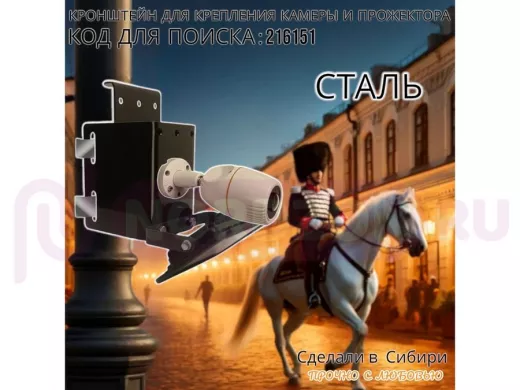- Кронштейн позволяет быстро зафиксировать прожектор или камеру наблюдения на столб или трубу.