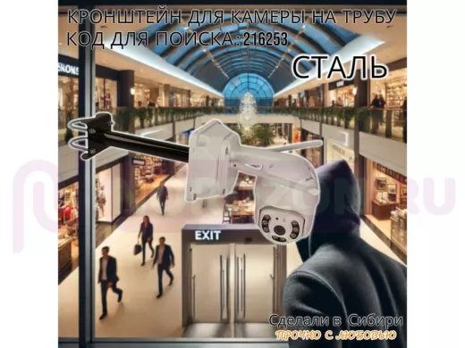 Заказать звонокКронштейн для видеокамеры на трубу 15...51мм вылет 25см под гермо-коробку "HIWOLL-216253" чёрный