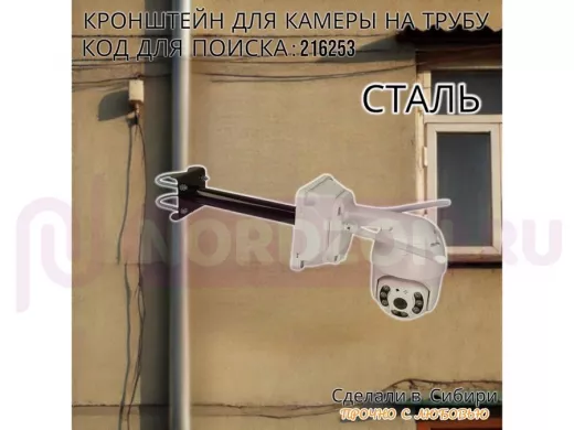 - Кронштейн предназначен для крепления поворотной или цилиндрической камеры на трубу.
