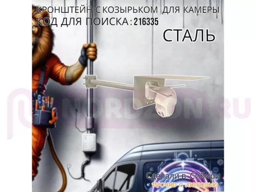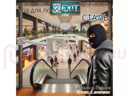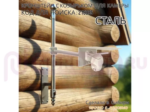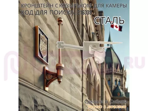 Заказать звонокКронштейн с козырьком для видеокамеры на трубу 15...51мм вылет 50см 24х22см "HIWOLL-216335" серый