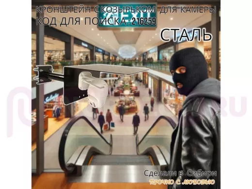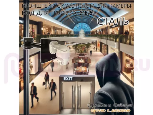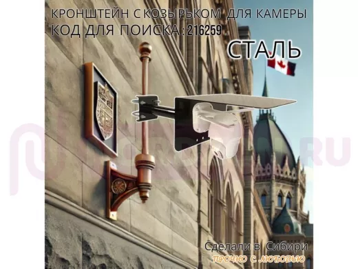 Заказать звонокКронштейн с козырьком для видеокамеры на трубу 15...51мм вылет 25см "HIWOLL-216259" чёрный