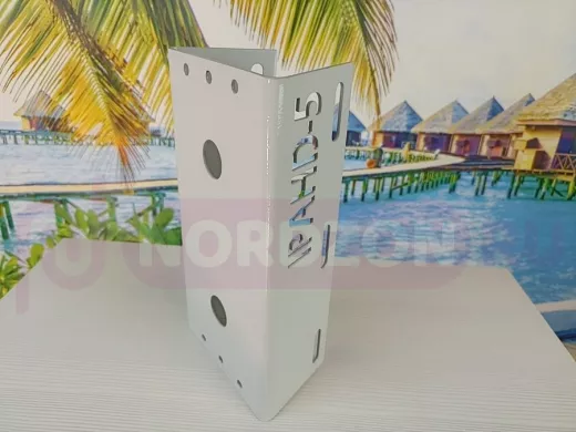 - Кронштейн позволяет быстро зафиксировать прожектор на столбе при помощи ленты или хомутов, не сверля сам столб.