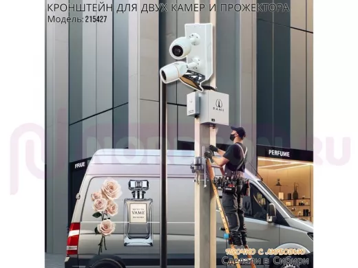 Заказать звонокНабор 2шт. Кронштейн для двух камер и прожектора на столб белый "IPAHD-201W-215427" под СИП-ленту