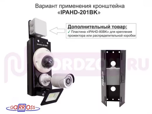 Заказать звонокКронштейн для двух камер и прожектора на столб чёрный "IPAHD-201BK-89767" под СИП-ленту, вылет 80мм