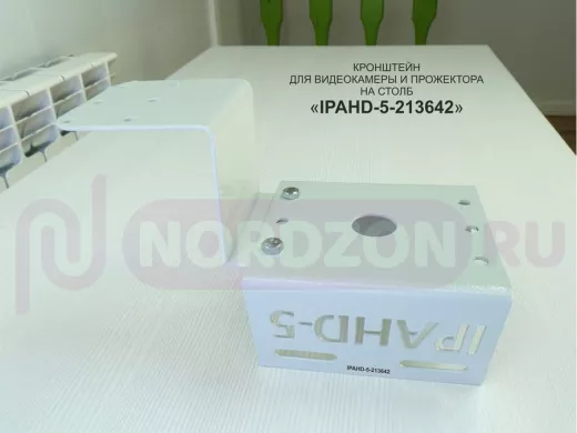 Заказать звонокКронштейн для камеры и прожектора на столб "IPAHD-5-213642" серый под СИП-ленту, хомут, вылет 75мм