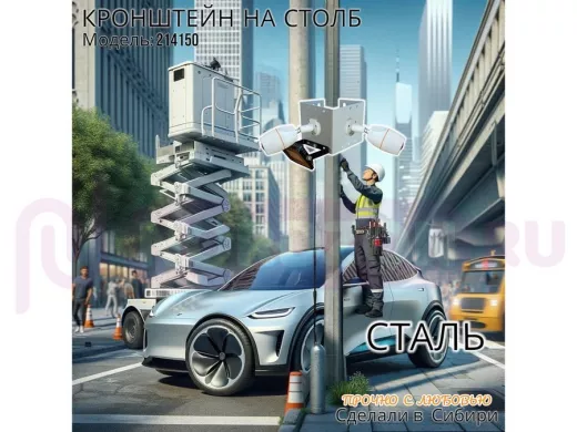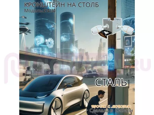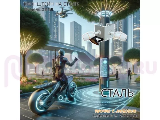 - Кронштейн для двух камер и прожектора, крепится при помощи СИП ленты монтажной на квадратный или круглый столб.