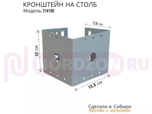 - Кронштейн позволяет быстро зафиксировать камеры видеонаблюдения или прожектор на столбе, не сверля его.